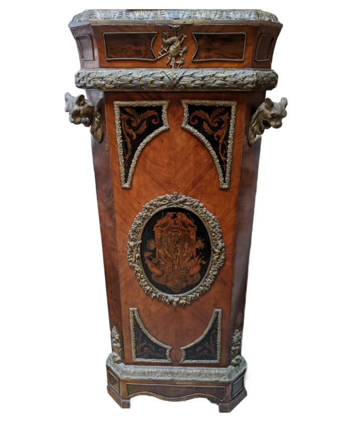 French Louis XVI style bronze ormolu mounted corner pedestal