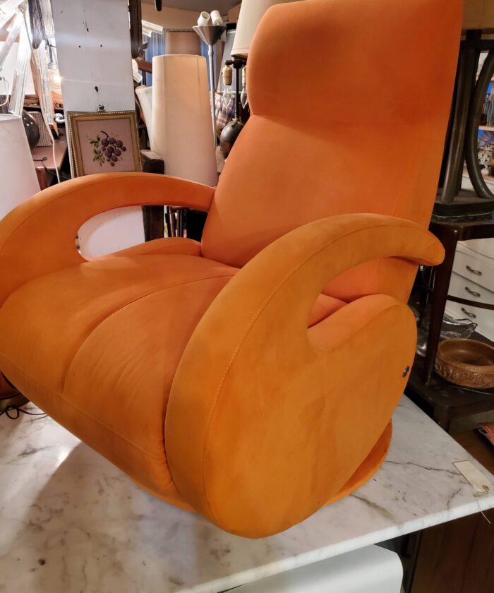 Retro orange leather suede Odyssey reclinerdesigned by Rick Lee for American Leather