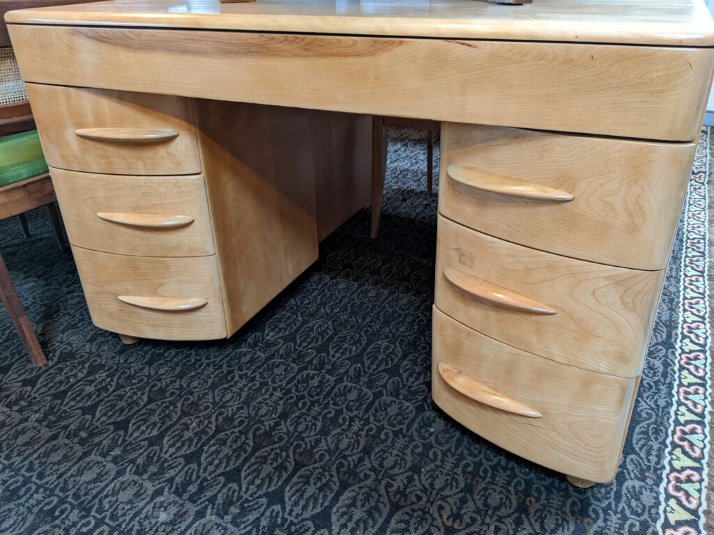 Mid 20th century modern blonde maple desk by Heywood Wakefield. C. 1950s