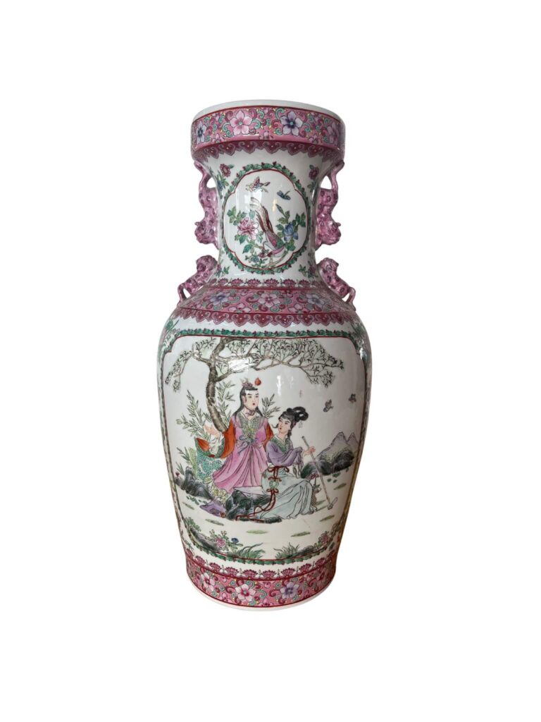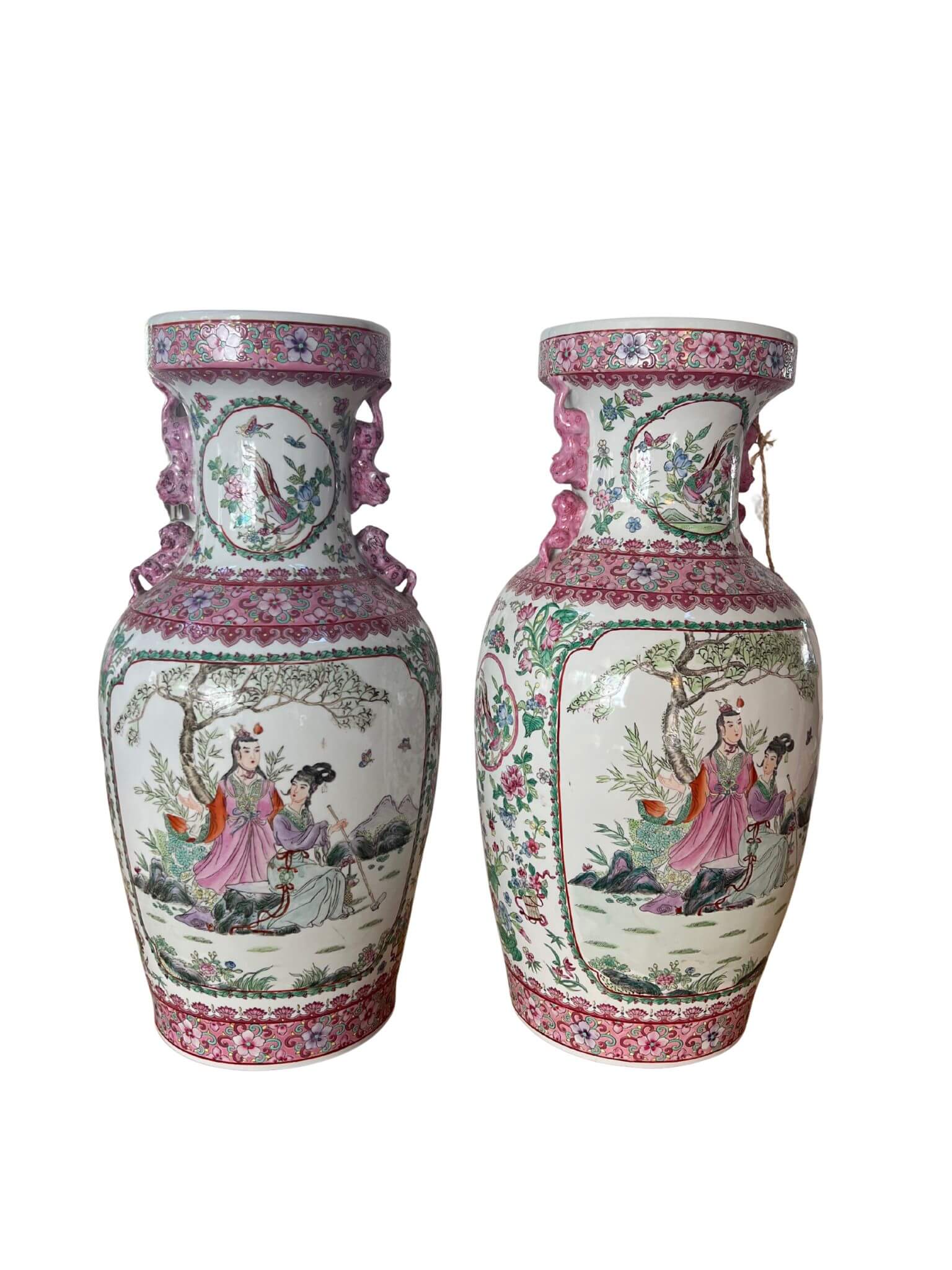Pair of Chinese porcelain vases decorated in the Famille Rose palette.